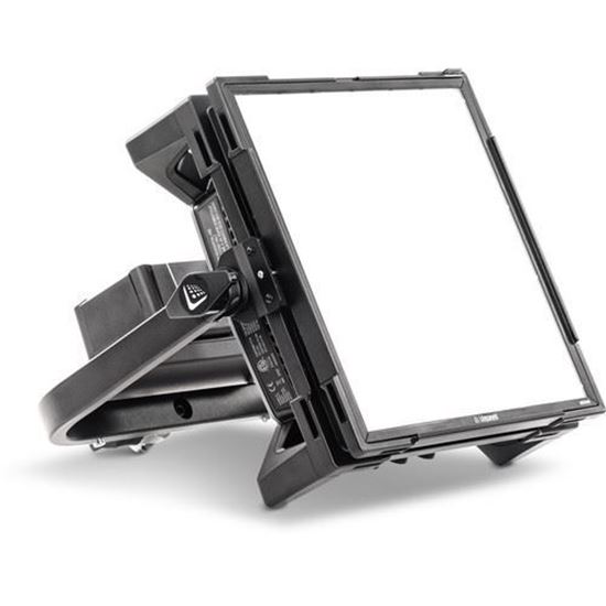 Stability, rugged construction, flexibility, and control are hallmarks of the Litepanels Gemini 1 x 1 Bi-Color LED Soft Panel with Standard yoke and US Power Cord. The aluminum-constructed, 12.6 x 12.6 x 4.6" fixture has multiple lighting modes including CCT, Hue, Saturation, Gel Presets, as well as an effects mode. The CCT color temperature control has six factory presets in increments from 2700 to 10,000K. There are also six presets for user-defined color temperature and plus/minus green control. The HSI Color mode allows you to adjust the hue, saturation, and intensity, while Gel mode permits your choice from a library of filters favored by filmmakers, and an effects mode provides nine different effects to work with. The light has a CRI/TLCI rating of 97 for daylight balance and 94 for tungsten balance, indicating an accurate rendition of color. The Gemini is dimmable from 100 to 0.1% without flicker or color shift, and settings and features are displayed on the rear LCD screen.