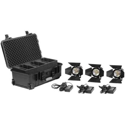 lighting with flexible color in the studio or on the road. The kit includes 3 Practilite 602 LED Fresnels,