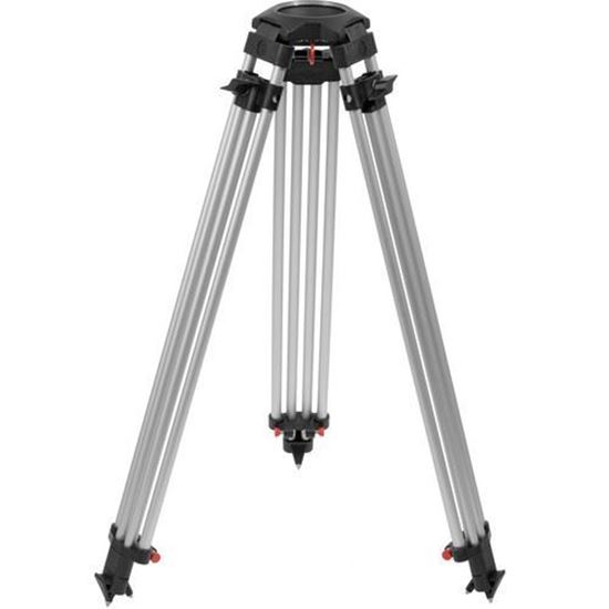 The Sachtler DA-100 L Long Tripod (100mm Bowl) is a one-stage, aluminum tripod featuring the Sachtler rotary clamping system. The torque provided by the rotary clamps securely locks the legs for use with heavier camera rigs weighing up to 77 pounds. With a folded length of 32", this taller tripod extends from 26 to 56" when using a ground-level spreader, and from 28 to 56" with a mid-level spreader (spreader not included).